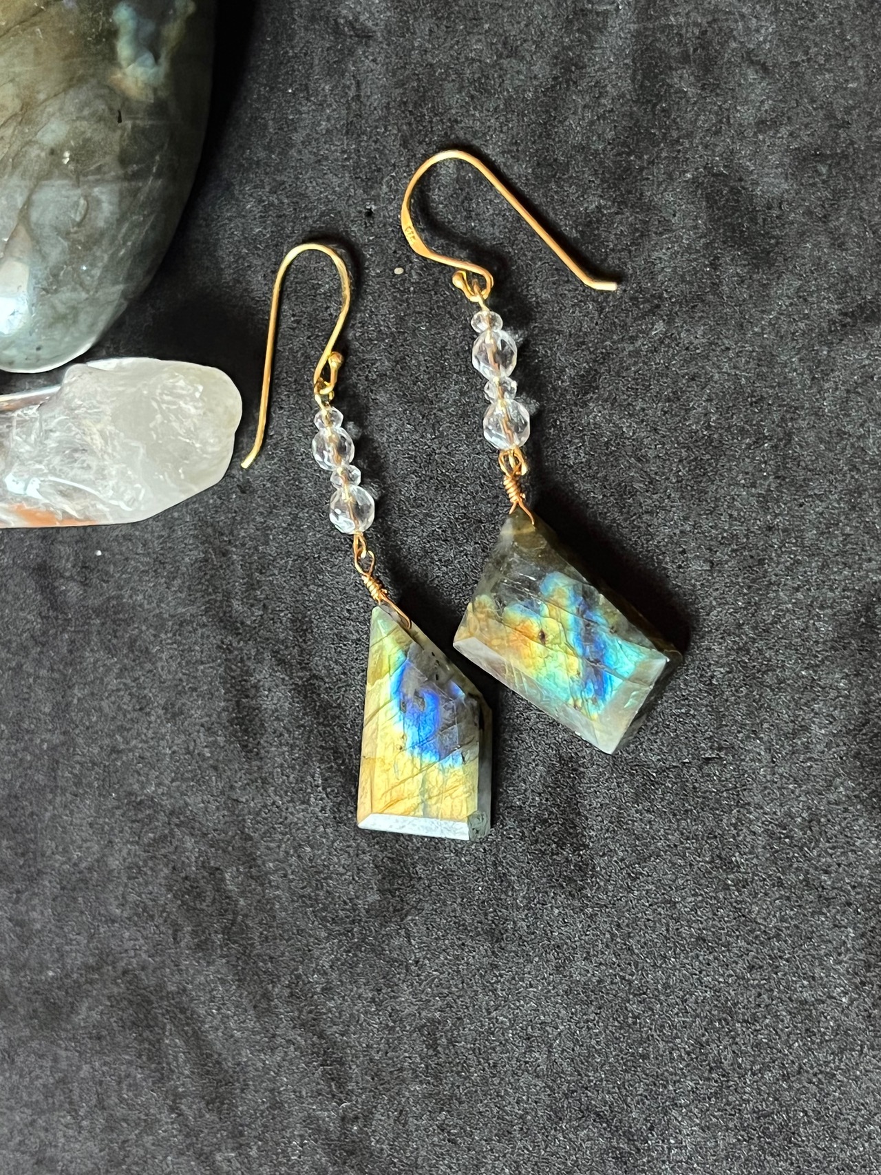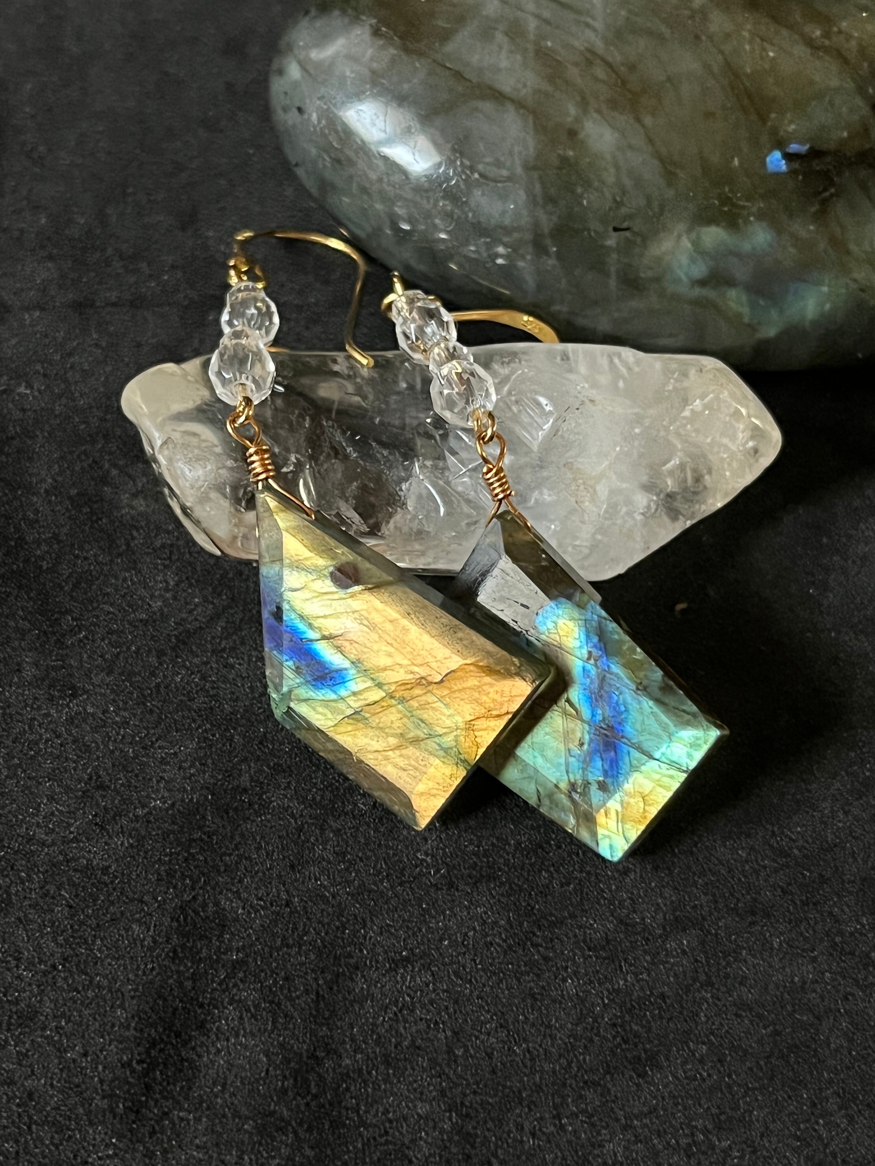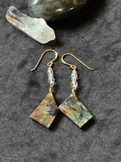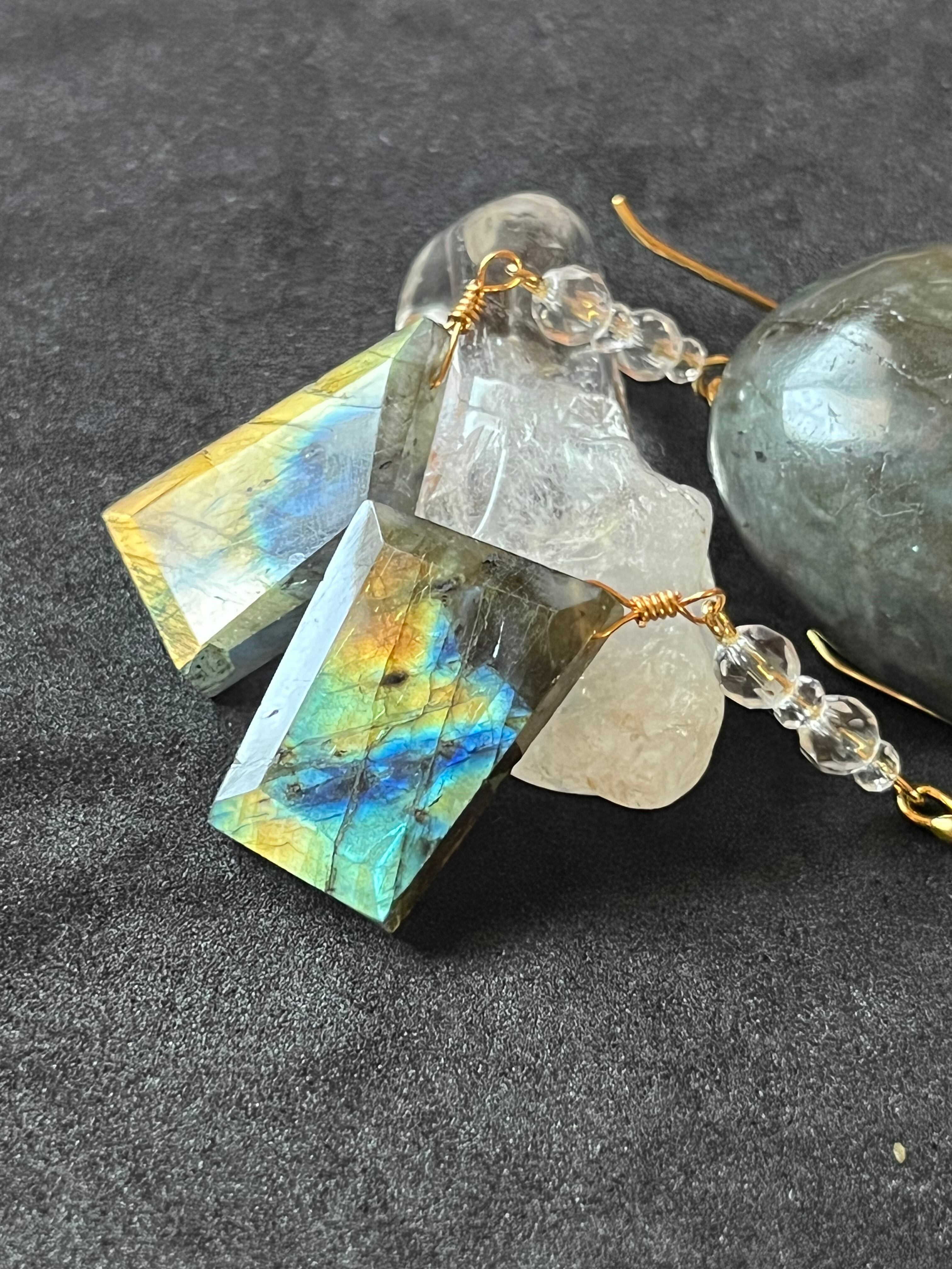 大粒+AAのラブラドライトとクリスタルをシルバー925、18kgfのピアスにしました〜