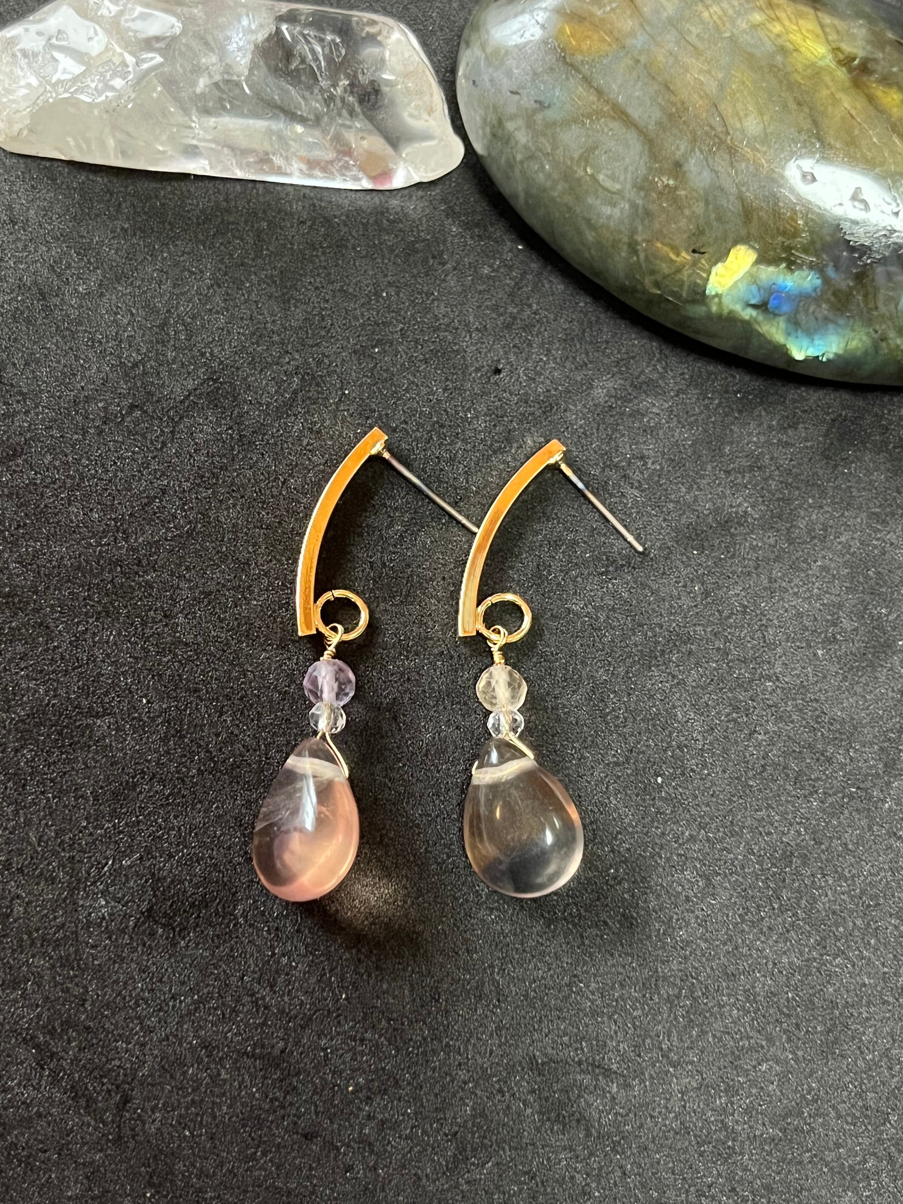 珍しいゴールドフローライトとクリスタルのIラインピアスです!