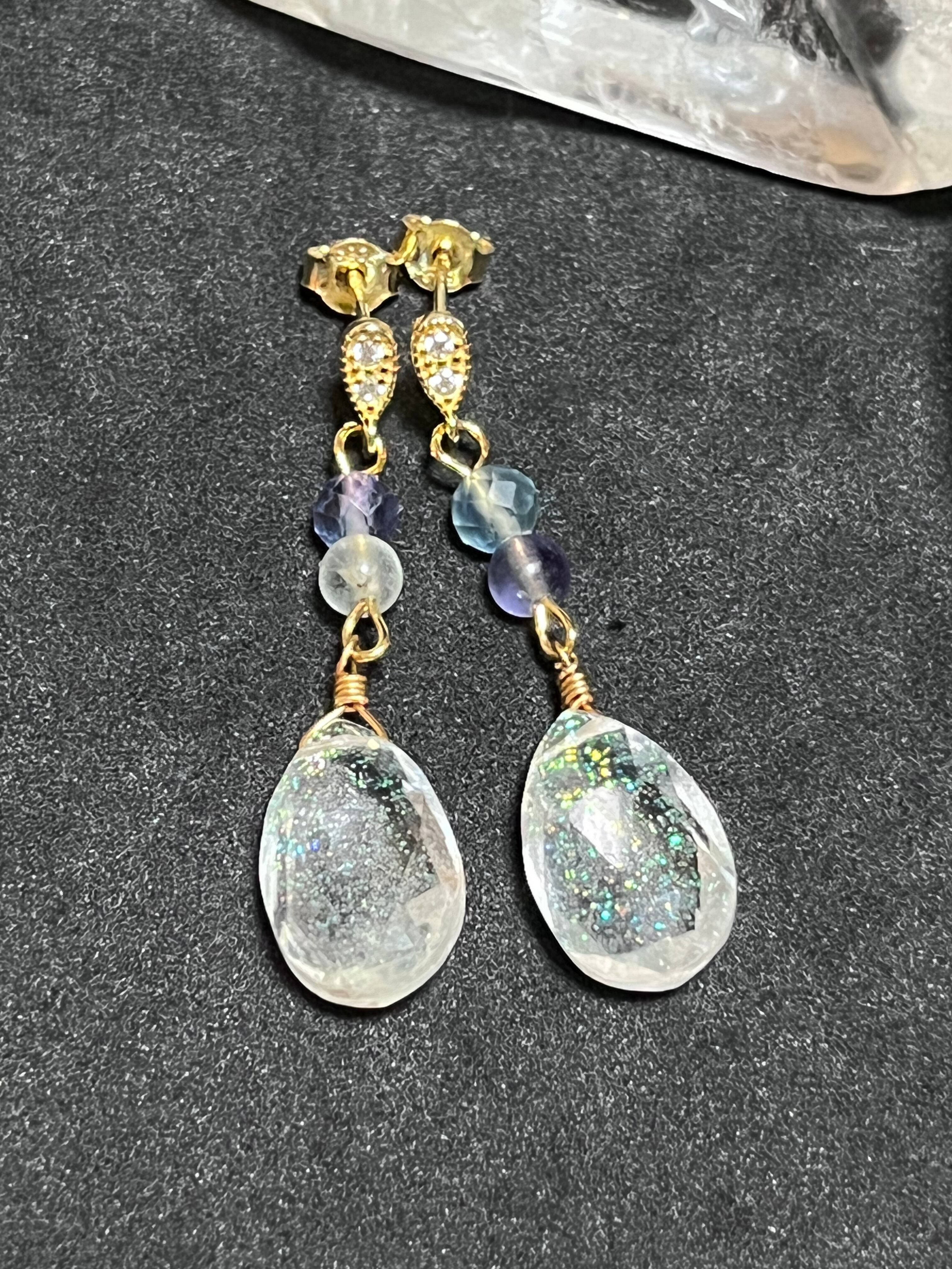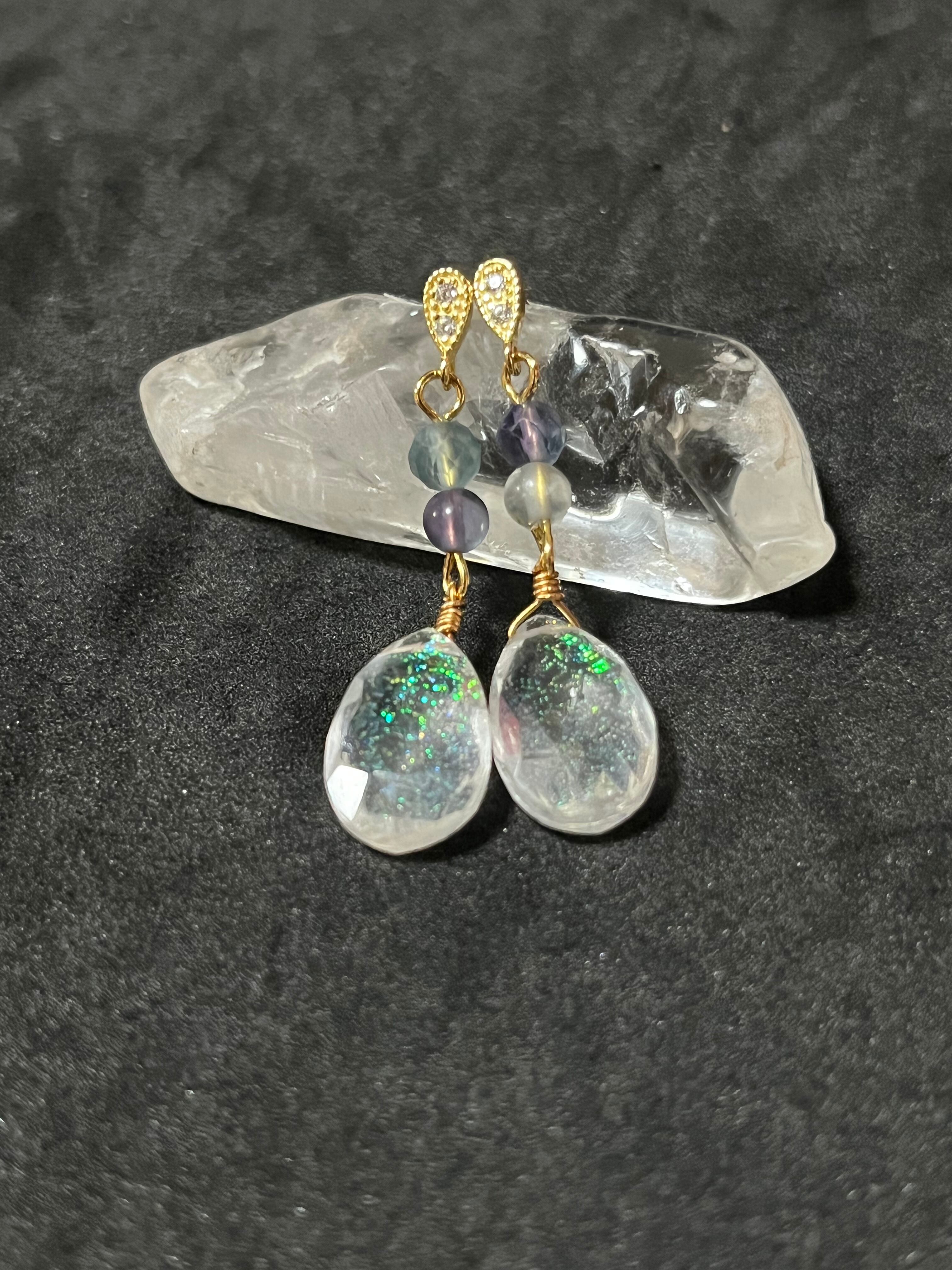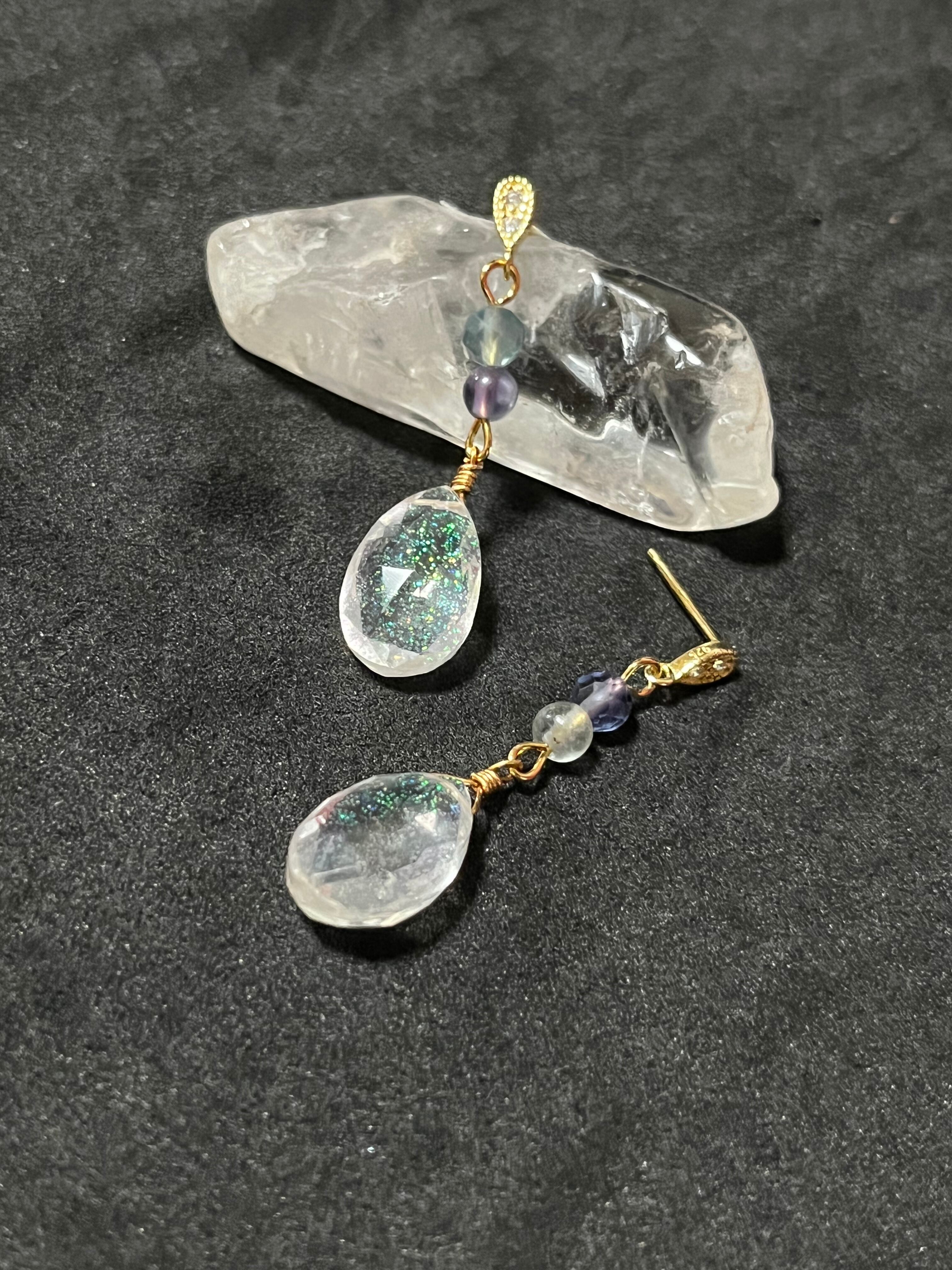 ダブレットになっているので厚みがあるクリスタルです。いろいろな角度でもキラキラ光りオーロララメが綺麗です。