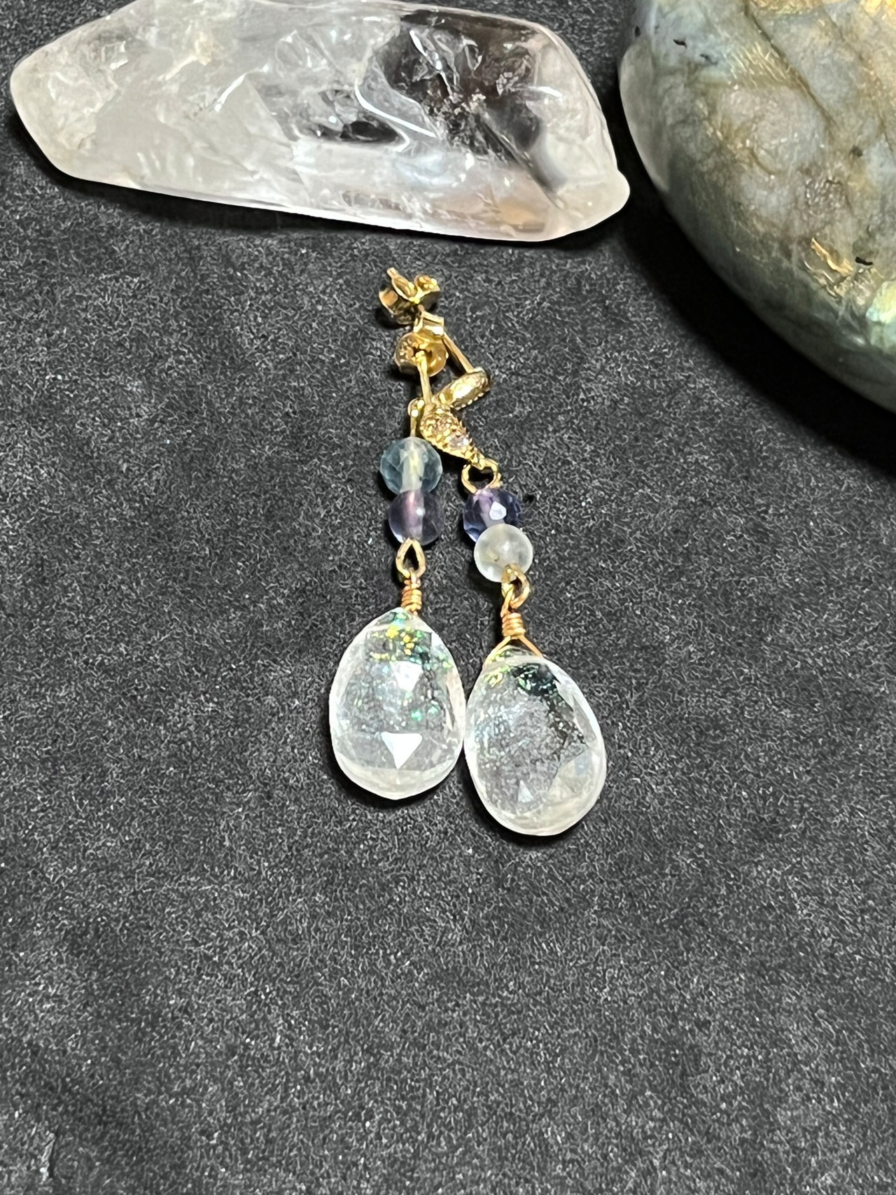 ダブレットクリスタルAAAペアシェイプとフローライト925シルバー18kgpCZピアスです!