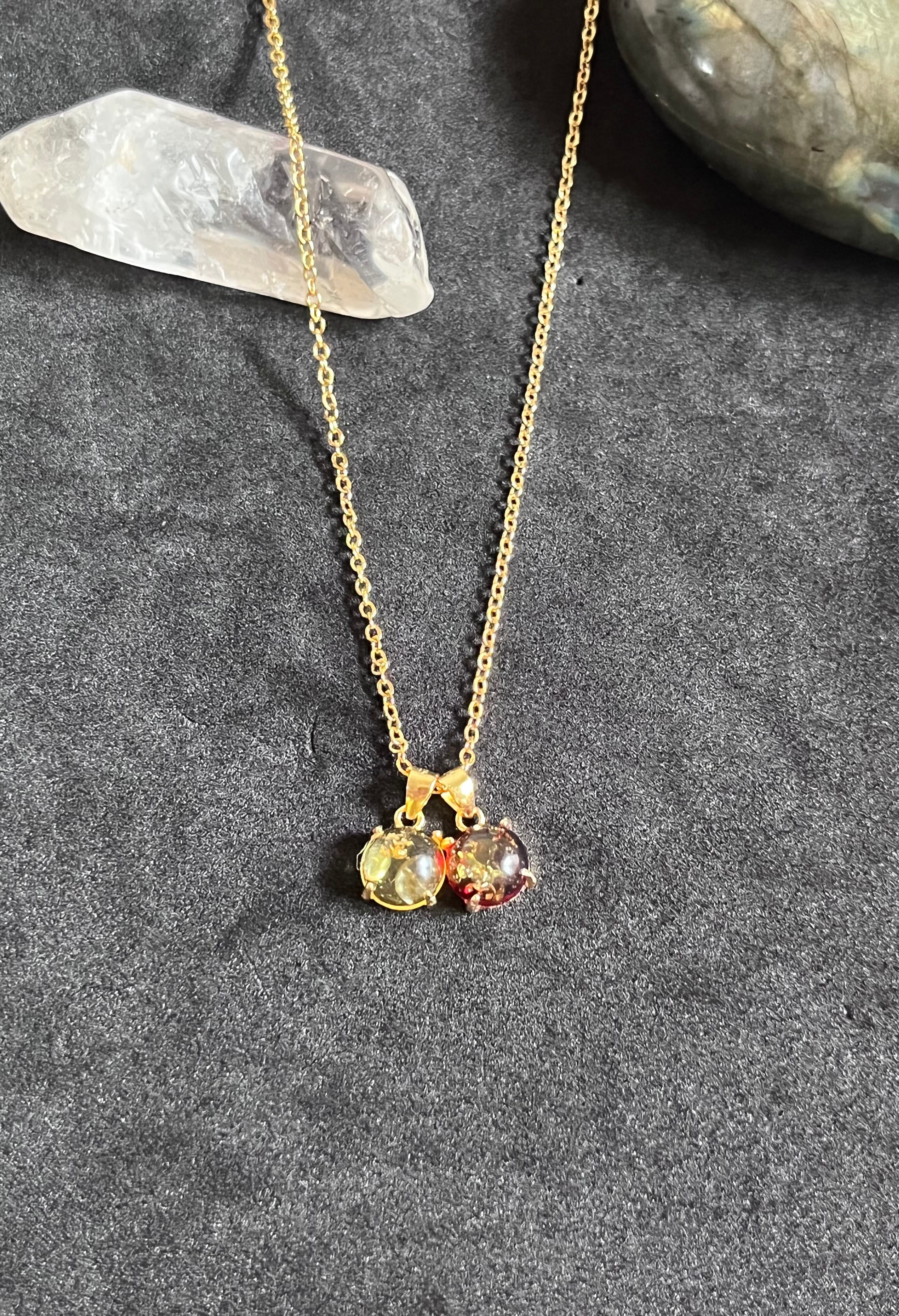 バルト海沿岸で採れるポーランド産の天然琥珀・バルティックアンバーのカボションです。 天然の琥珀に色加工を施し、この美しい色合いに仕上げています。 内部にはクラックが見られ、乱反射する煌きがより華やかな印象を与えます。