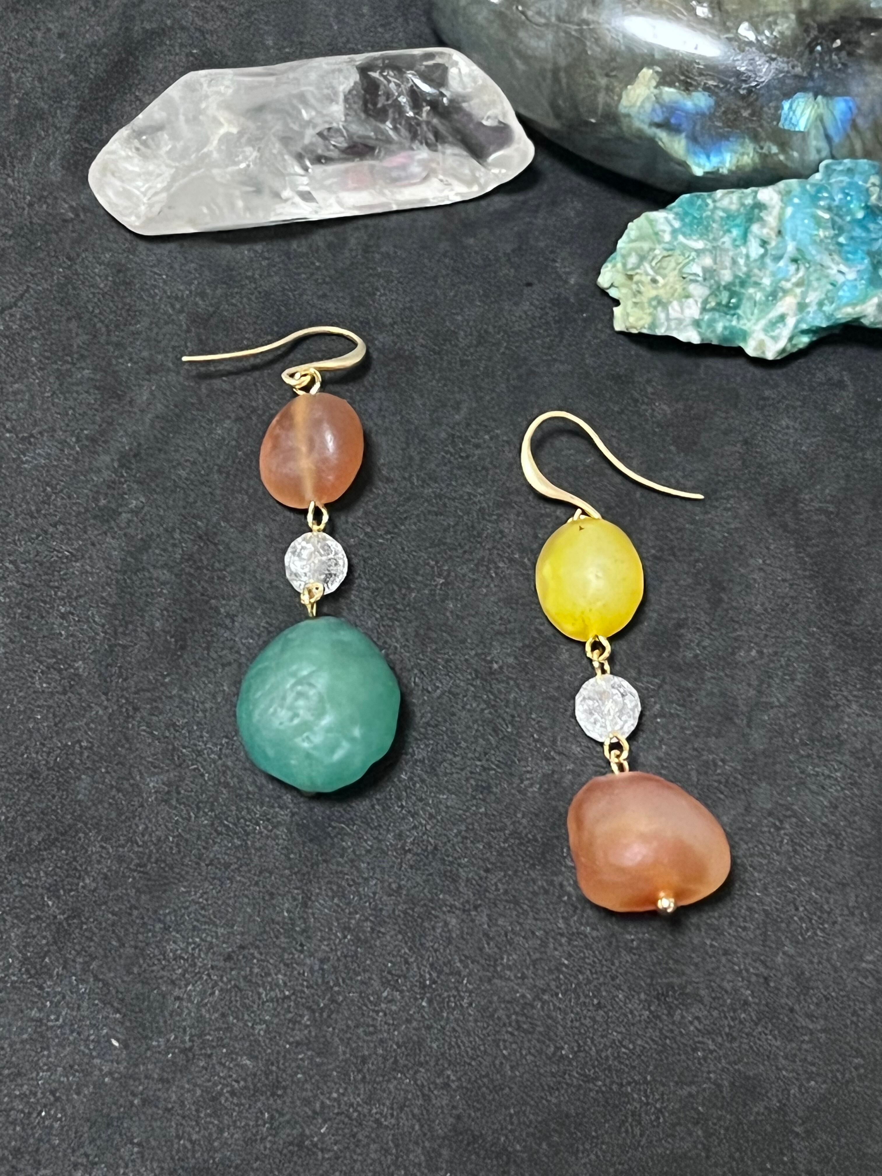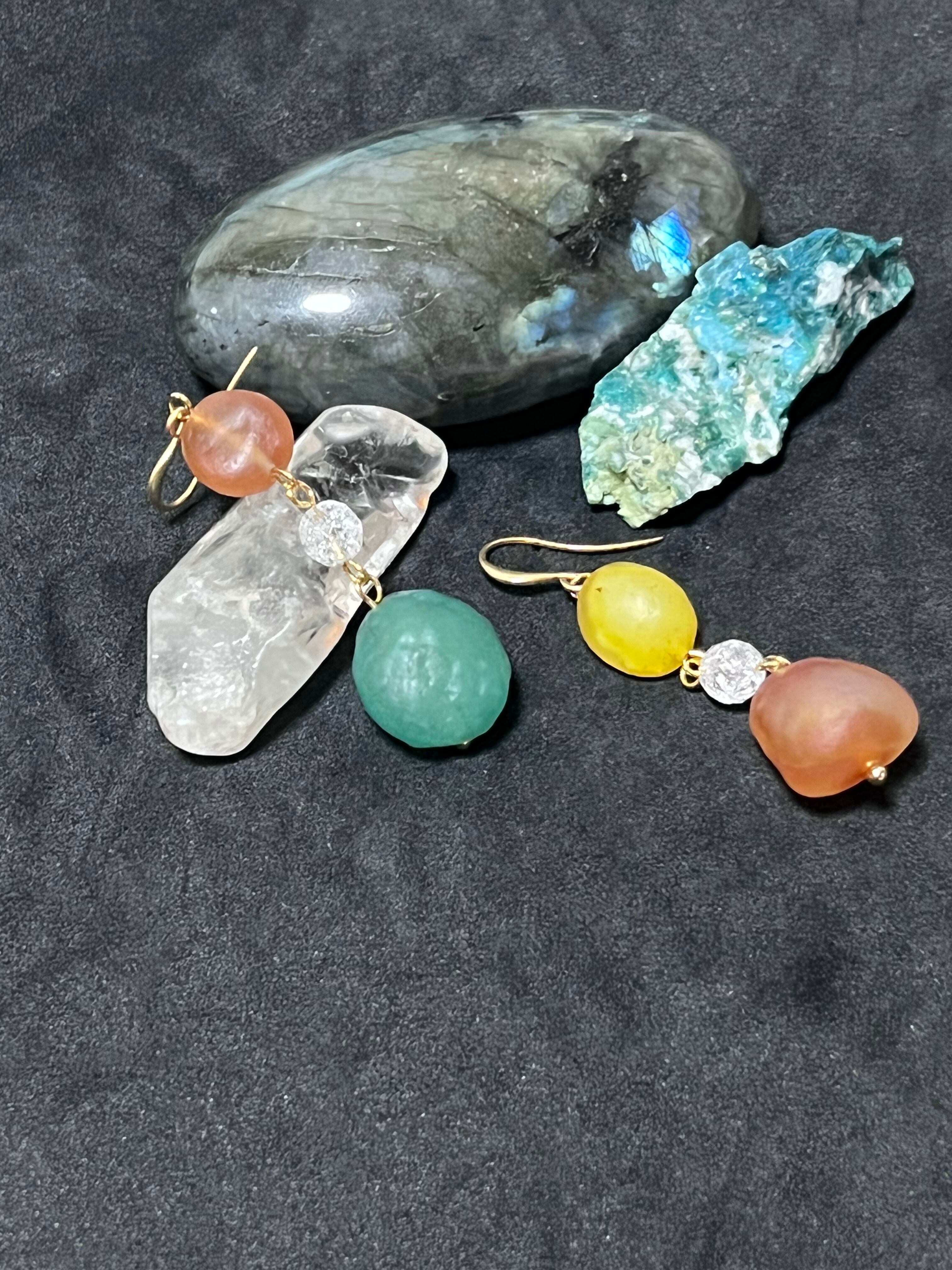 希少 阿拉善(アラシャン) ゴビアゲートとクリスタルのmat goldピアス!