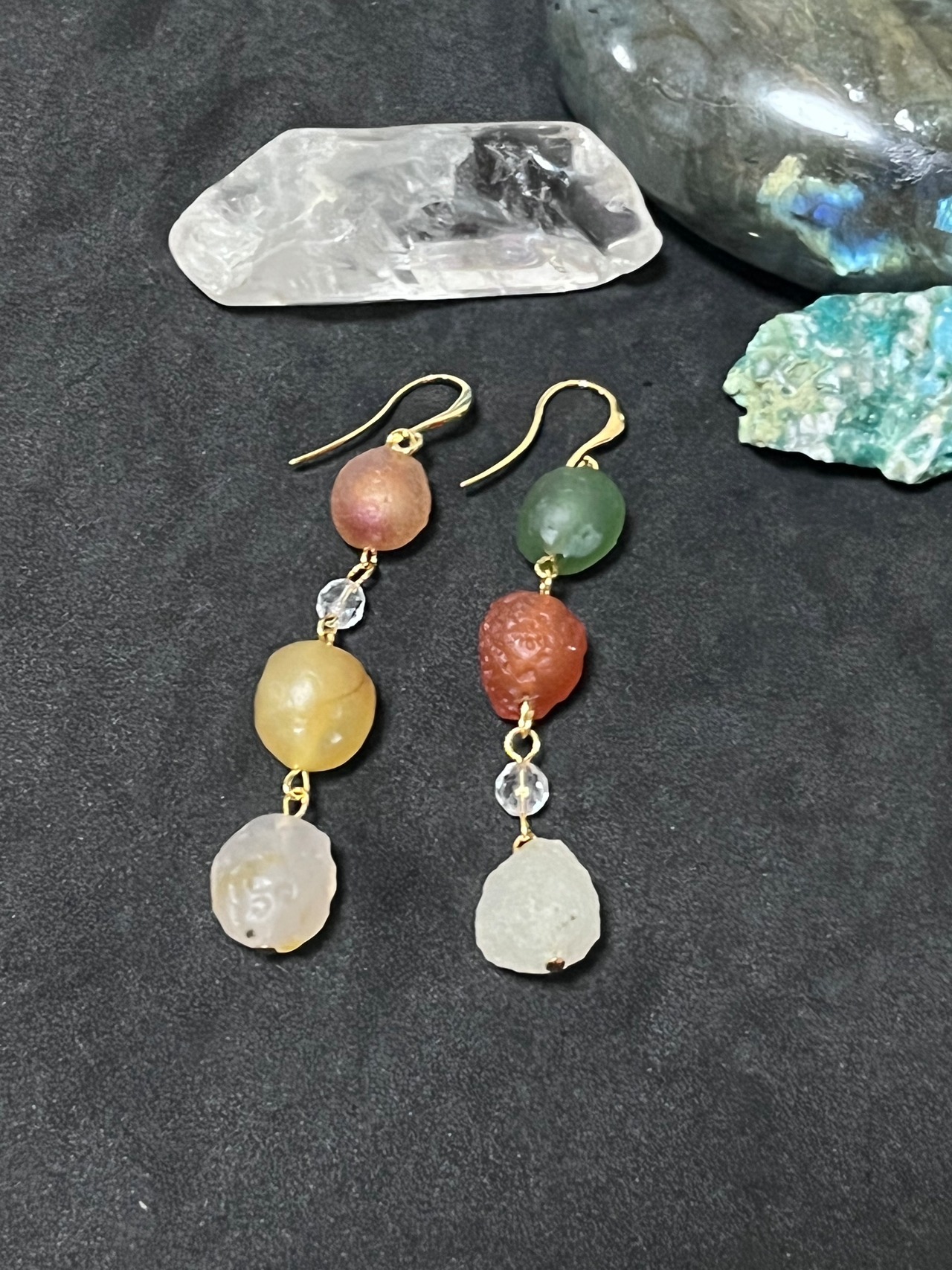 希少 阿拉善(アラシャン) ゴビアゲートとクリスタルのピアス!
